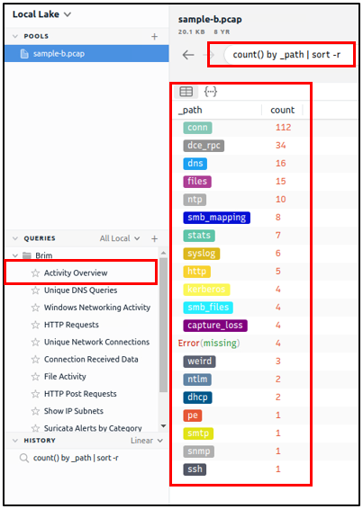 We mentioned that Brim had 12 premade queries in the previous task. Let's see them in action! Now, open Brim, import the sample pcap and go through the walkthrough.