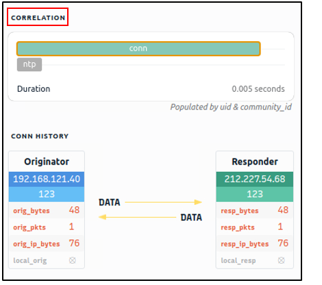 These two queries provide information on unique connections and connection-data correlation. The provided info helps analysts detect weird and malicious connections and suspicious and beaconing activities. The uniq list provides a clear list of unique connections that help identify anomalies. The data list summarises the data transfer rate that supports the anomaly investigation hypothesis.