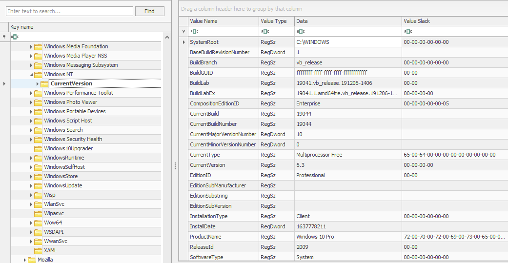 If we only have triage data to perform forensics, we can determine the OS version from which this data was pulled through the registry. To find the OS version, we can use the following registry key: